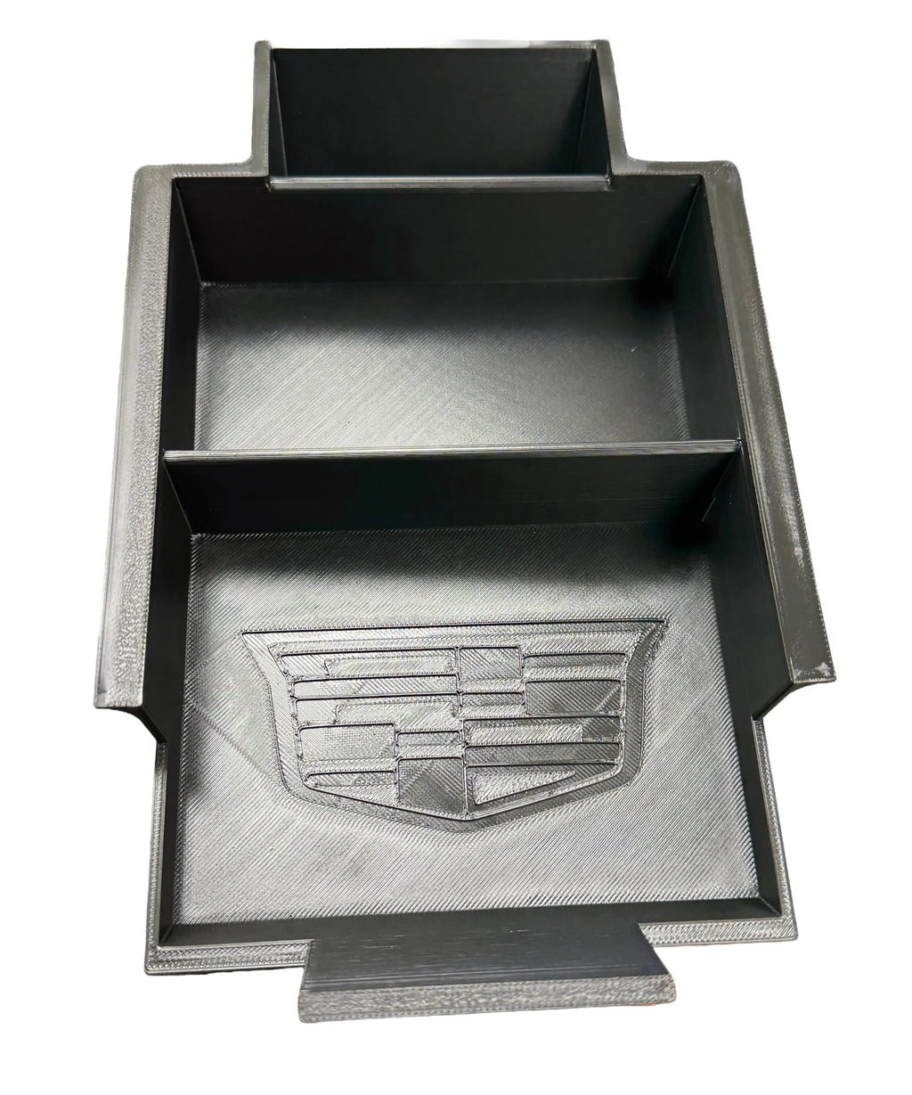 Not only does the console tray add functionality, but it also adds a touch of style to your vehicle's interior. The sleek design compliments the luxurious feel of the Cadillac Vistiq, making it a perfect match for its high-end features. Because of this blend of style and practicality, the custom tray elevates your driving experience, providing both comfort and ease in one elegant solution.