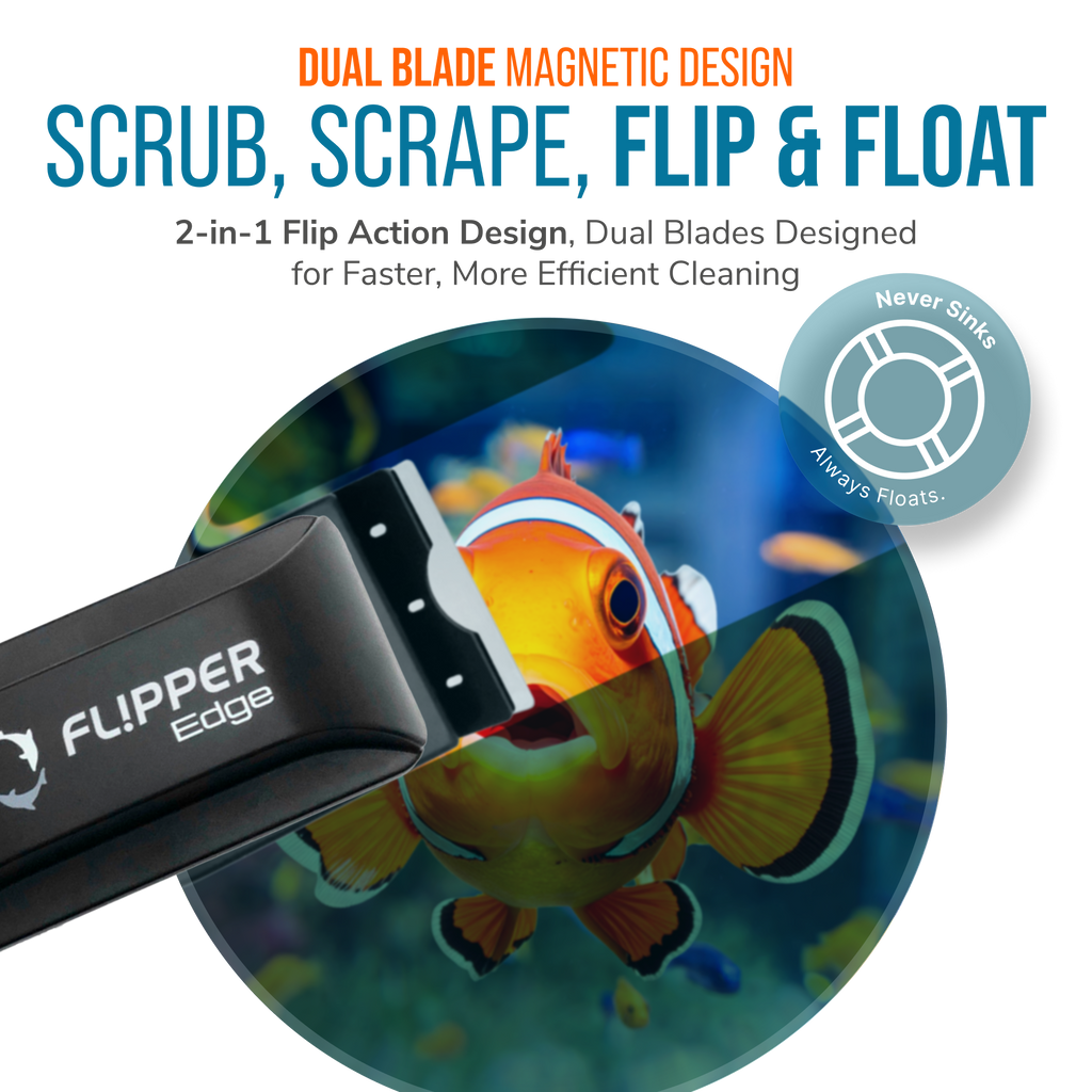 Scrubber, Scraper, Flipper. Patented 2-in-1 magnetic aquarium cleaner with dual blades. Flips from scrubber to scraper simply by rotating its handle. Give yourself The Edge STD - the most advanced aquarium cleaner ever made.