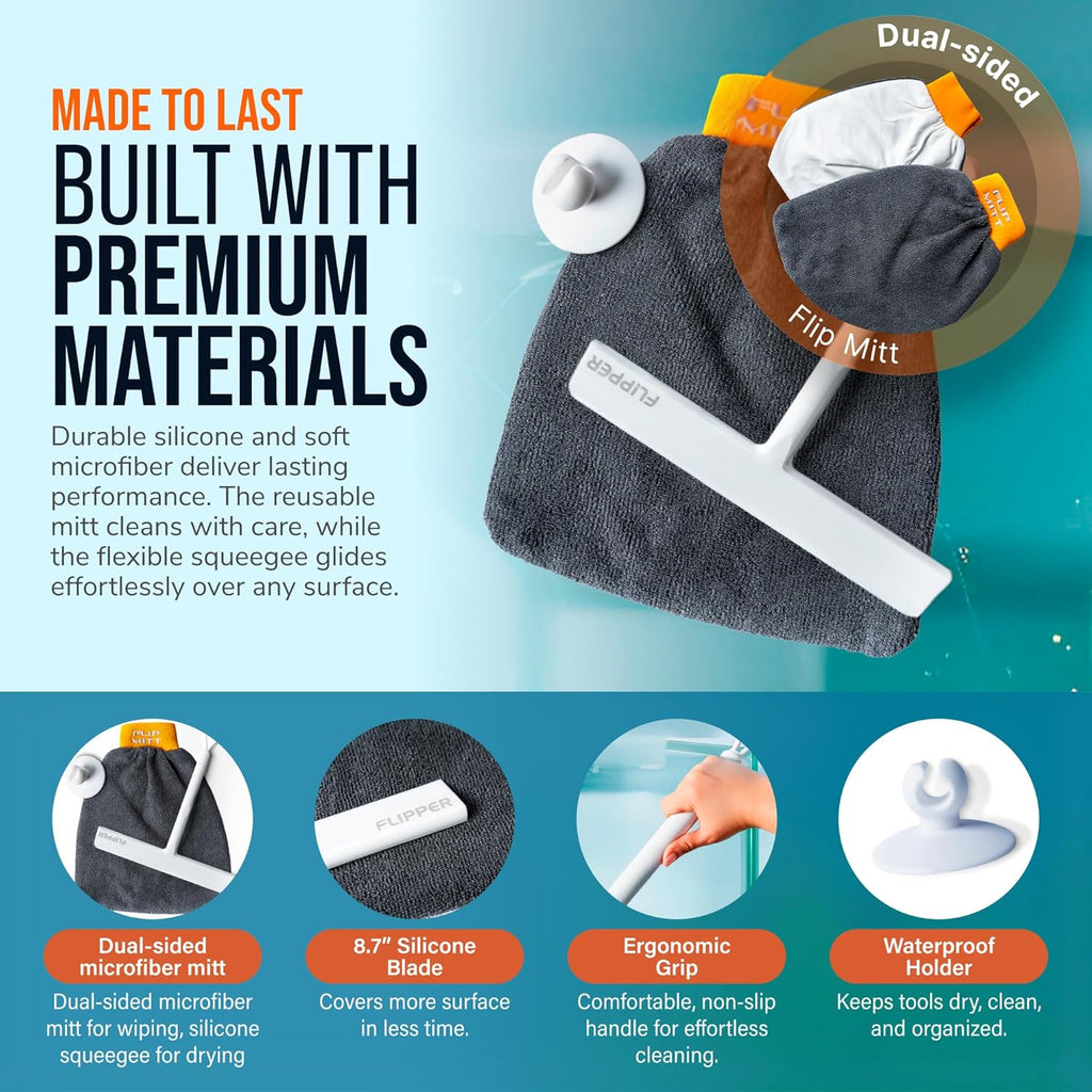 - Reusable Dual-Sided Microfiber Mitt: Soft and absorbent, this mitt cleans mirrors, windows, shower doors, and glass surfaces—removing water and residue for a clean, dry, streak-free finish.