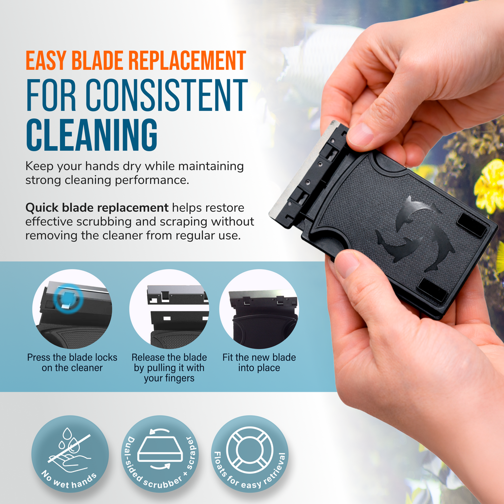 Compatible with original Flipper Cleaner and the Nano Float Magnet. These stainless steel replacement scraper blades are designed with an ultra low profile making it easy to clean the hard to reach areas of the tank. Blades are interchangeable and replaceable.