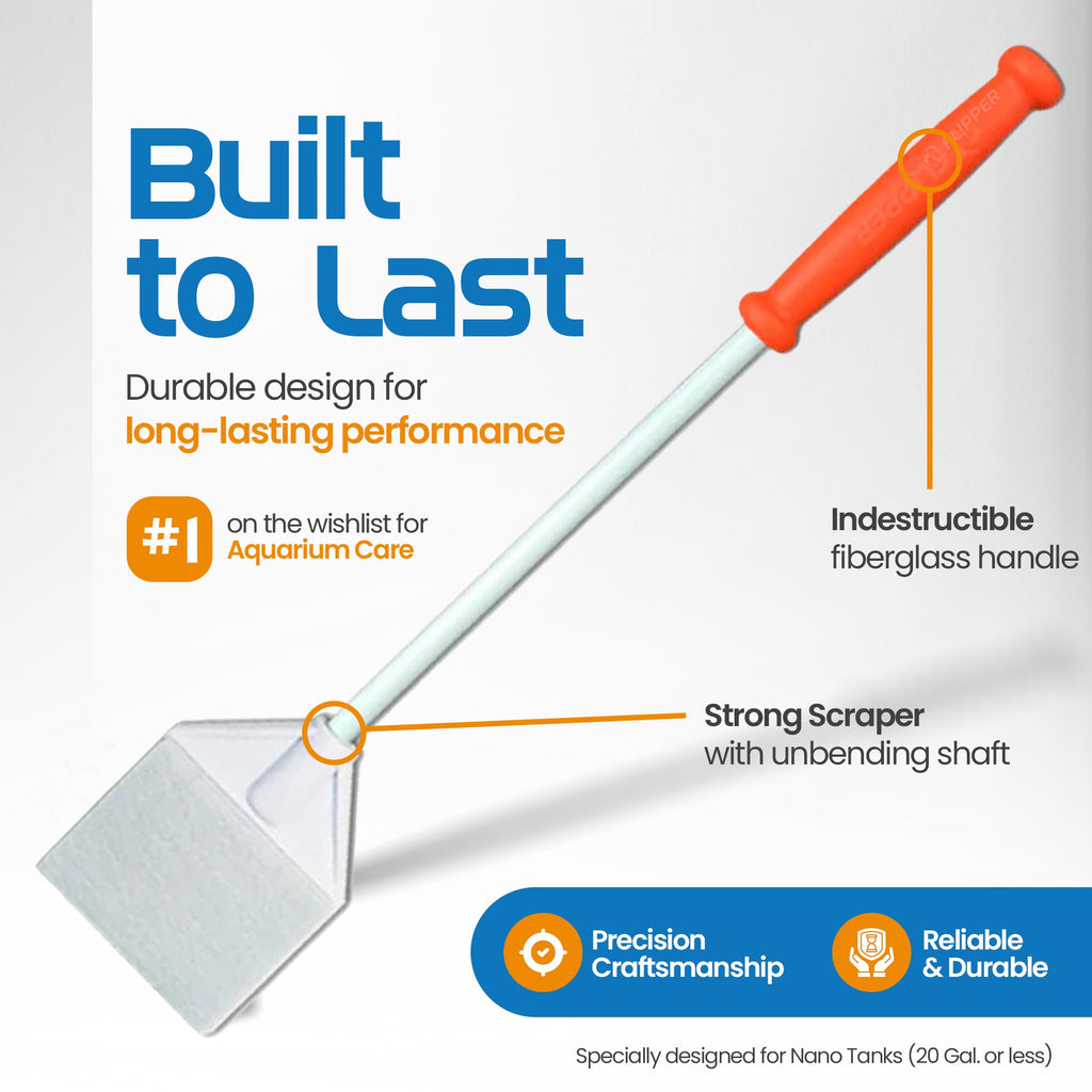 - Made with a shallow scraper angle, ideal for the tight confines of nano tanks